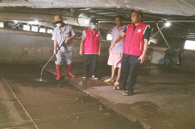 据悉,藤县金鸡祥睿养猪场位于藤县金鸡镇大坟村山上,采取公司加农户的模式发展生猪生产,猪场使用公司提出的养猪技术规程,实行封闭式管理,猪场运行状况良好,效益不错。但是,养殖业主容易忽略肉猪售完后对空栏猪舍的管理。科技特派员抓住猪场刚出栏完的时机,及时上门指导做好清洗猪栏工作,防止高温季节因猪粪不及时清理引起的细菌繁殖,为做好下批生猪入栏的准备工作,保证生猪健康生长创造良好的环境。
