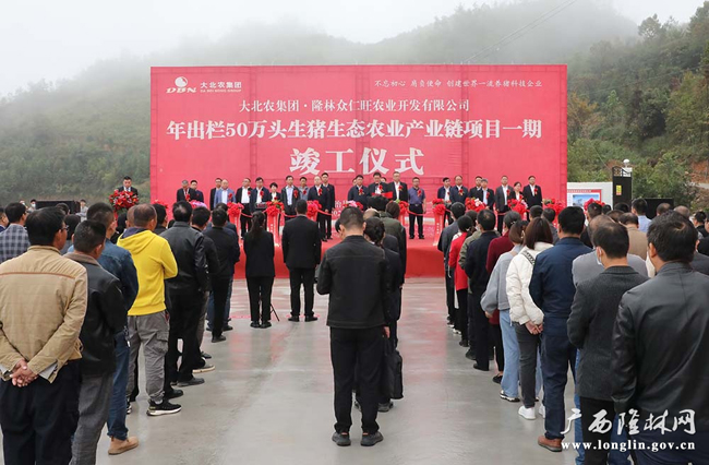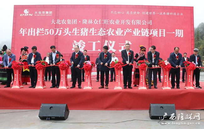 10月28日,大北农集团·隆林众旺农业开发有限公司年出栏50万头生猪生态农业产业链项目一期竣工投产仪式在隆林隆重举行。