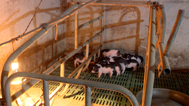 在平果市太平镇壮烈村村民梁春艳家中的养殖场,刚刚出生20多天的桂中花猪嘻戏打斗,憨厚敦实的桂中花猪则蜂拥着跑到圈门边,企盼着吃食。院子里,梁春艳正忙着给“猪宝贝们”准备午饭。