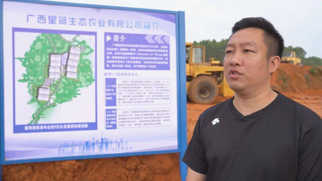 广西星荷生态农业有限公司董事长 周艺:我们智慧生猪养殖主要应用loT “物联网+互联网”的方式做生猪养殖,引入新的德国技术,整套设备从德国引进贵港,是广西首次应用液态饲喂中央厨房养猪,我们还采用绿色新能源养猪方式,即“养猪+光伏”项目。