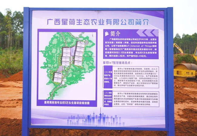 据了解,广西星荷生态农业有限公司是一家科技型的专业育肥猪养殖公司,星荷 loT 智慧猪场按照“高效、生态、安全”的养殖理念,通过物联网、互联网、 AI 人工智能及智能装备等现代信息技术与农业跨界融合,把喂养自动化、监控智能化等技术应用到养猪环节。此外,养猪场还配套建设生物有机肥发酵棚及有机肥生产线,全量化利用猪场粪尿,实现养殖废弃物资源化利用,达到“种养结合、以养促种、循环利用”的“零排放”绿色环保生态养殖。