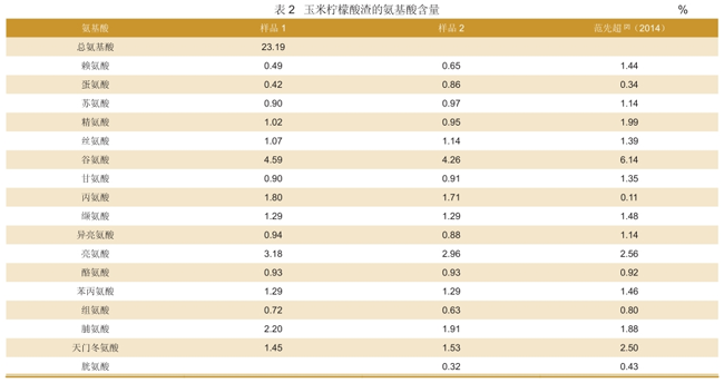 玉米柠檬酸渣含有丰富的氨基酸如表2所示。由于玉米柠檬酸渣中还含有发酵菌体蛋白及残留的柠檬酸,其营养价值和适口性均优于大多数其他的玉米蛋白副产品。但是从表2中的数据来看,不同来源的玉米柠檬酸渣在氨基酸含量方面可能存在较大差异,最好是经过检测后再使用。