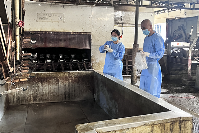 近日,河池市动物疫病预防控制中心到南丹县开展非洲猪瘟监测采样工作,共采集环境样品90份,血清样品30份,采样场点涉及生猪养殖场(户)、农贸(交易)市场、生猪屠宰场所、生猪运输车辆洗消中心(点)、公路卫生监督检查站等点位。