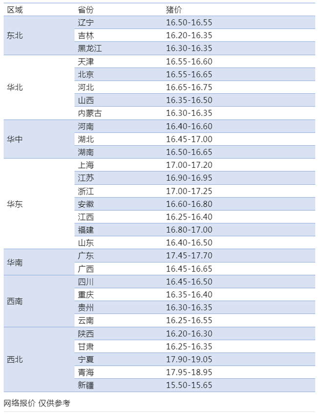全国标准生猪平均每公斤价格为8.28元。猪价涨跌调整,北方地区稳定为主,东北地区压价不成立,稳定为主,实际成交稳中偏强,低于8块市场惜售情续较浓,主流报价在8.0到8块12,河南一哥出栏价格上涨2毛,广东地区偏弱2毛,目前情绪上有惜售+卡价预期,消费端实际弱一些。只能说近期跌幅空间不大且下旬降温有小幅反弹预期。