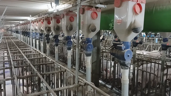 温氏长春种猪场负责人张新度说:“实现自动化人工智能饲养减少了40%人力,投料精准度提升了50%,避免了饲料浪费,节约生产成本10%,饲喂精准度提升了90%,实现环保用水的节能目标。”