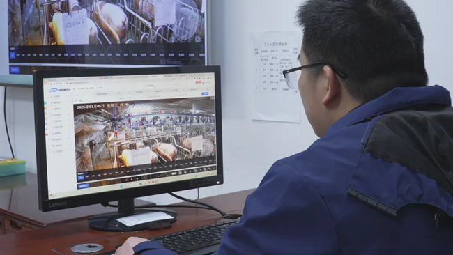 在麦岭镇长春村的一种猪场“敲敲键盘”智慧养猪