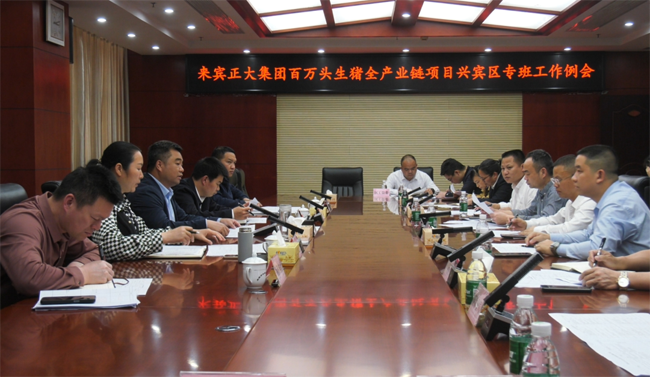 广西农牧养猪网讯 4月7日,兴宾区召开来宾正大集团百万头生猪全产业链项目专班工作例会。会议由兴宾区区长蓝海鹏主持,区委副书记唐彦乐、政府副区长韦艳林及正大集团项目负责人等相关部门负责人出席会议。本次会议聚焦项目推进中的关键环节与难点问题,系统性推进项目落地见效。