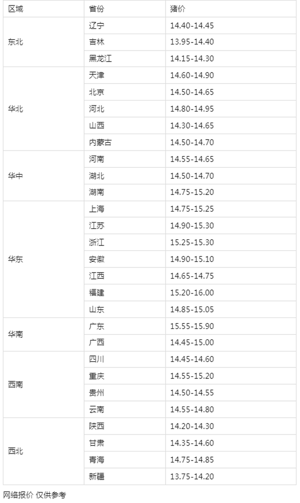 根据搜猪网监测数据,全国生猪市场均价在14.5-14.6元/公斤已盘