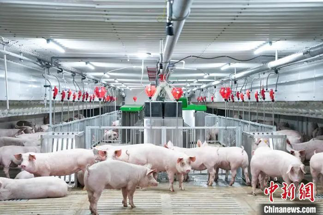 图为广西扬翔集团股份有限公司的楼房智能养猪场。