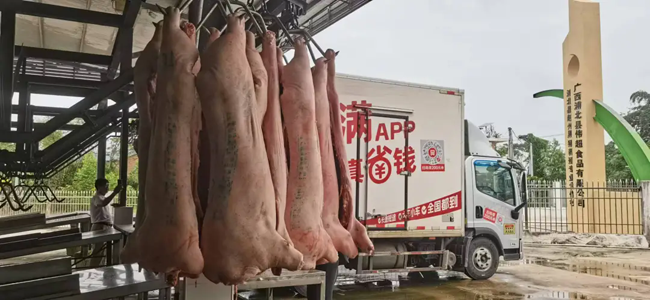 浦北县越州黑猪养殖专业合作社的视野并不局限于传统的养殖环节,而是积极向产业链上下游拓展,全力提升产品附加值。合作社所属公司广西浦北县伟超食品有限公司投入3800万元,建成集屠宰、分割、肉类加工于一体的肉猪屠宰加工厂,引进全自动化、机械化屠宰设备,年屠宰生猪15万头,目前已新增肉鸡、肉鸽等禽类屠宰流水线,实现禽畜屠宰集中化、规模化发展。通过初、深加工,形成了冷鲜分割肉、猪肉巴、圆蹄等特色农副产品,再经过冷链车运输,点对点配送到广州、东莞、海南等地。