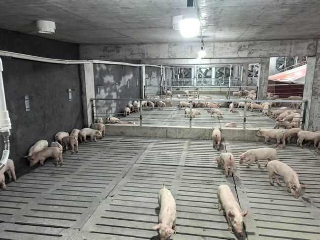 一、主要简介:楼房养猪是一种新兴的现代设施生猪养殖模式,因其集土地利用率高、建设成本低等优点已逐渐被推广。桂林平乐弘鑫养殖有限公司张家生猪养殖场项目是我县今年重点引进的现代设施畜牧业项目之一,同时也是桂林市第一个建成投产的现代设施立体楼房式养猪项目,该项目采用立体楼房式全密闭大跨度猪舍设计,配套智能化刮粪系统、喂料系统、风控温控系统、智能监控、生产性能监控等现代设施设备。该项目总投资6000万元,计划新建4层楼房养猪5栋,总占地面积约41亩,猪舍占地面积约14亩,猪舍总建筑面积约3.4万平方米,可常年存栏生猪3万头,年可出栏6万头,年产值约1.3亿元,目前该项目一期已于2025年4月25日建成投产1栋4800头。
