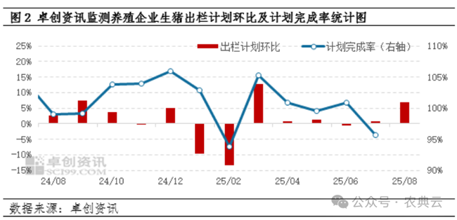据卓创资讯监测全国212家规模养殖企业7月份生猪出栏计划完成率为95.73%,因夏季高温天气下生猪增重速度减慢,叠加猪价持续下降,养殖端出栏节奏放缓,出栏计划完成率欠佳,导致8月份可出栏生猪数量增加。