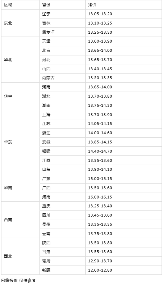 国生猪收购均价呈现下跌态势,标准体重生猪平均价格为6.85元/斤,全国生猪收购最高价为海南,价格为8.0元/斤。