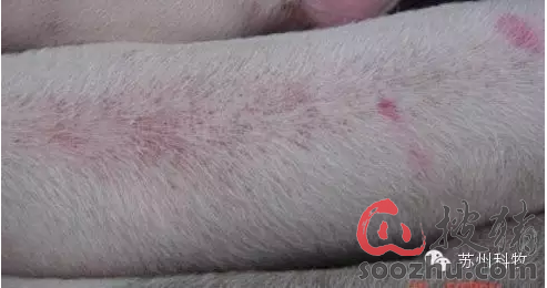 体温40.5----41.5摄氏度,食欲减少,精神沉郁,鼻镜干,流水样鼻液,粪多干燥,呈暗红色或煤焦油样,稀粪少见,眼结膜充血,在耳根、下肢、股内侧、下腹部可见紫红斑或间有小出血点,界限分明。怀孕猪流产或产出死胎,即使产出活仔,也急性死亡或发育不全,不会吮奶,或为畸形怪胎,母猪在分娩后自愈。仔猪死亡率可达30—40%,甚至60%以上。