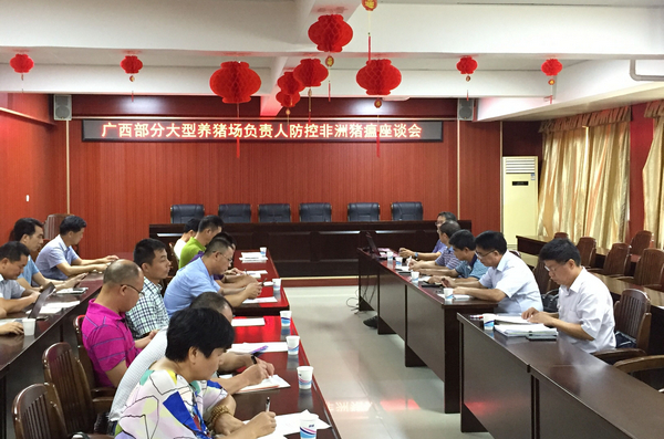厅防疫检疫监督处及自治区动物疫病预防控制中心、动物卫生监督所、兽药监察所等负责同志,广西20余家大型养猪场负责人参加会议。