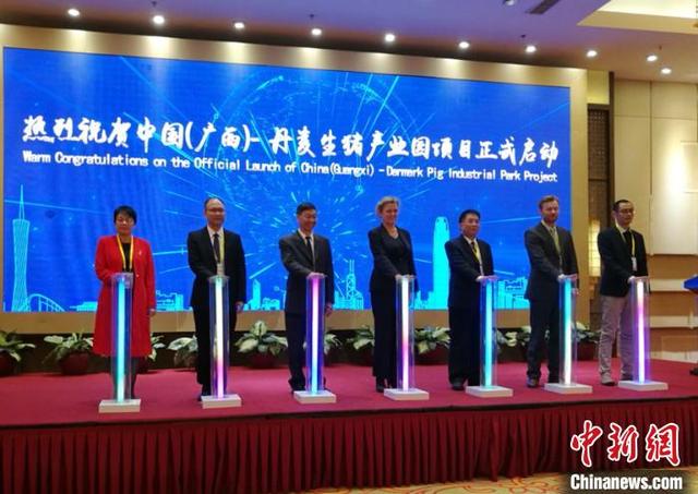 中国(广西)—丹麦生猪产业园项目当天启动,该项目将从丹麦空运引进种猪,按照全国100家生猪核心育种场的标准进行建设及育种。项目计划总投资80亿元,建设内容包括种猪、产业化育肥、屠宰及食品加工、生鲜厨房等多个方面。项目建成后将可实现年出栏猪苗500万头,创造就业岗位8500人以上,实现年销售额达100亿元以上,实现育、繁、养、宰、销一体化融合发展新格局。