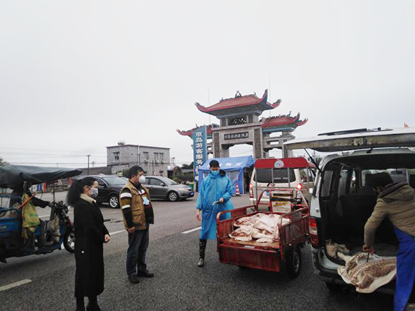 为应对疫情期间的市场供应,解决老百姓对猪肉产品的日常需求,切实保障市场正常供应和价格基本稳定。2月7日早上,市农业农村水利局会同市发展和改革局、市市场监督管理局协调我市生猪养殖企业、屠宰企业,为澫尾村提供424斤猪肉产品,保障群众猪肉供应,并由市发展和改革局局长陈汉芸、市农业农村水利局副局长樊文明亲自护送到位。下一步,我局将继续加强各部门联动,及时做好市场水产畜禽产品和蔬菜等“菜篮子”供需情况监测,对疫情防控期间出现的趋势性、苗头性问题,做到早发现、早预防、早准备、早解决,保持市场供应基本稳定,满足市场消费需求,为打赢疫情防控攻坚战提供坚强物资保障工作。