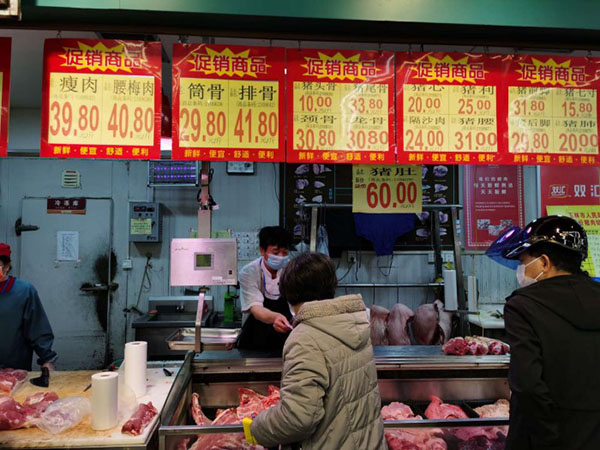 记者在现场看到,金色阳光超市除了销售政府惠民平价猪肉外,还增加了生鲜猪肉投放量,并对猪肉价格进行了下调,比市场价便宜6~10元/公斤。“瘦肉79.6元/公斤,腰梅肉81.6元/公斤……”金城超市积极响应“保供稳价”政策,禽肉、蔬菜、水果等商品售价均低于集贸市场,并足量供应。