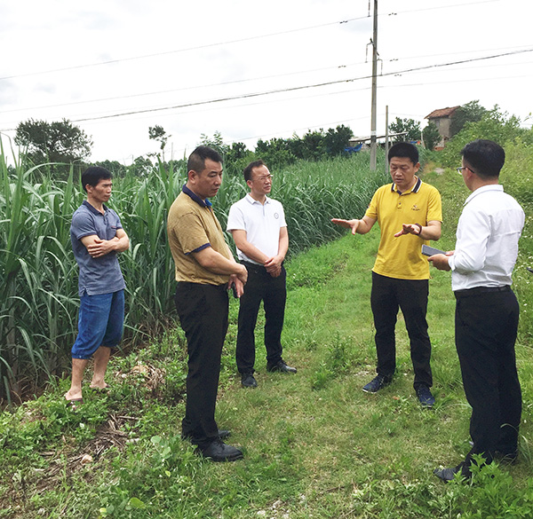 2020年6月9日青秀区人民政府副区长谢伟(右二)陪同牧原实业集团有限公司到南阳镇实地考察生猪养殖建厂选址