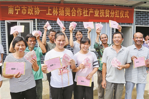 6月13日,对上林县镇圩瑶族乡佛子村来说,是个喜庆的日子,扬樊养殖农民专业合作社分红了。